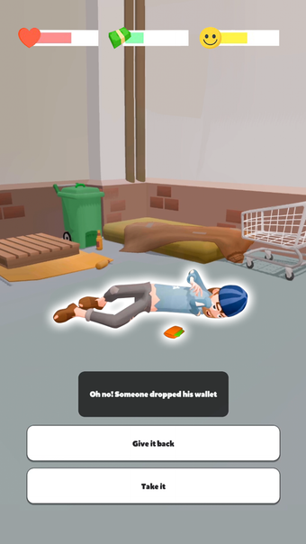이 게임은 당신에게 도전을 제공하며, 진행하기 위해 현명한 선택을 해야 합니다. 예를 들어, 굶주릴 때 땅에 지갑을 발견할 수 있습니다. 주인에게 돌려주거나 음식을 사기 위해 가져갈까요? 때로는 덜 분명한 선택이 더 큰 보상으로 이어질 수 있습니다.
